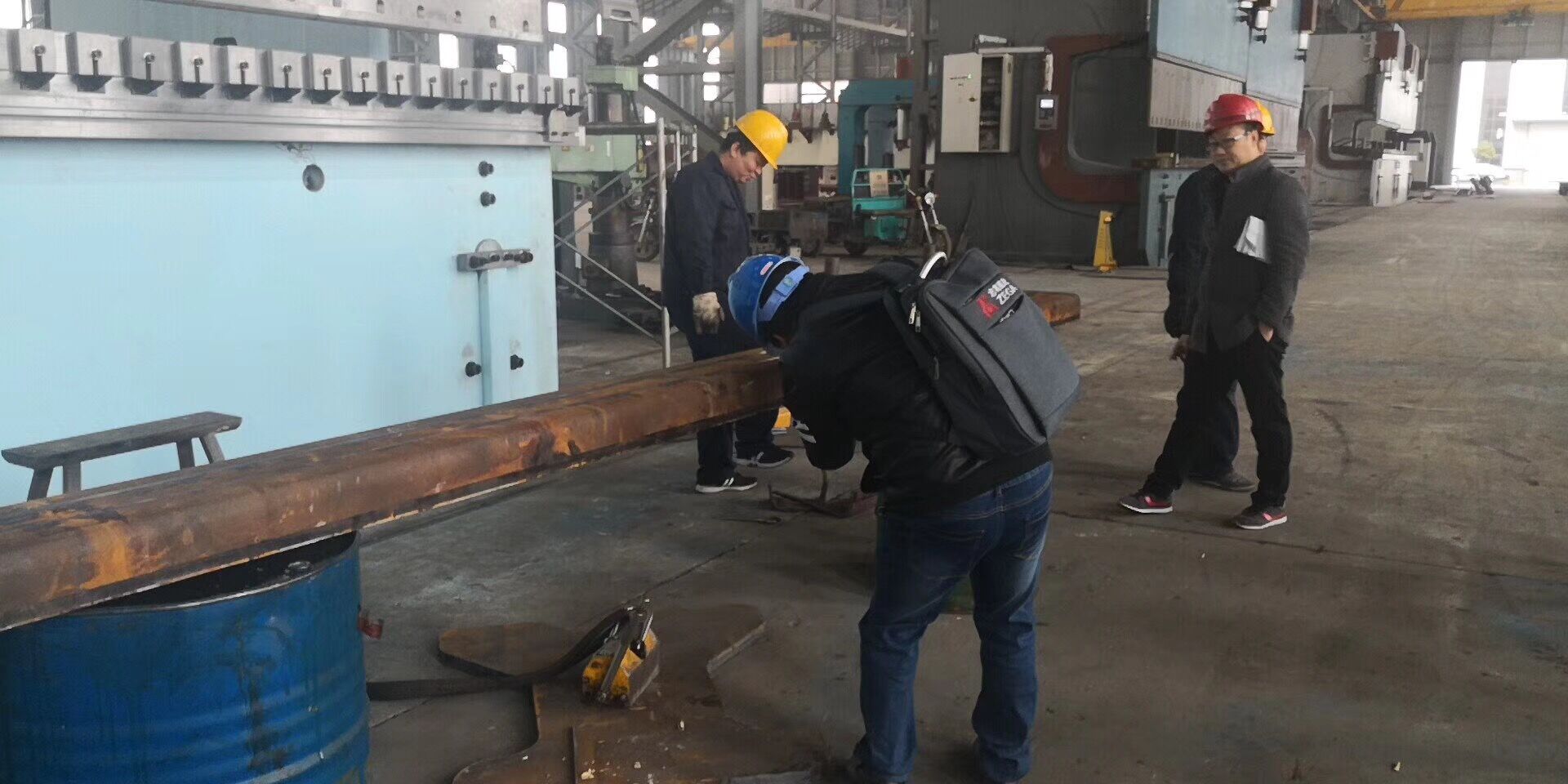 WE67K-1000/6000數控(kong)折彎機客戶驗(yan)收,南通東海機(jī)床制造集團專(zhuān)業大型特大❤️型(xing)鍛壓設備生産(chan)制造商,下面爲(wei)WE67K-1000/6000數控折彎🔱機客(kè)⁉️戶現場折彎驗(yan)♍收圖片: